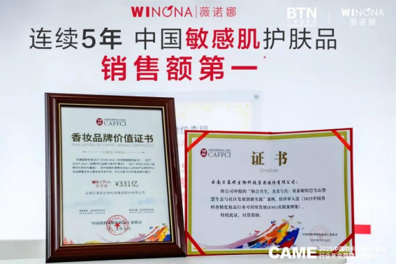为聚焦行业“高品质、高规格、高精尖”发展路径,共同探讨中国香妆产业在全球创新高地建设与新质生产力培育方面的战略布局与发展方向,2025年中国香料香精化妆品行业年会暨精品博览会(CAME)在南京举行。贝泰妮集团旗下专研敏感肌肤的皮肤学级护肤品牌薇诺娜也携明星产品矩阵与前沿科研成果亮相。